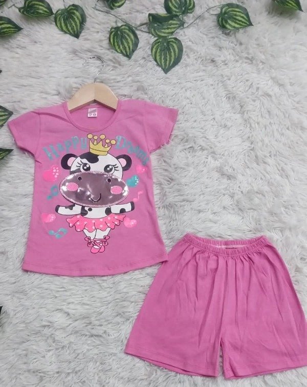 Conjunto de algodón, remerita estampada y animada, y short liso, variedad de colores. Talles 2 al 6 ♥︎ IMPORTANTE♥︎ Agregar 5 unidades al carrito para respetar la curva y el precio mayorista. En caso de querer 2 curvas 10 unidades