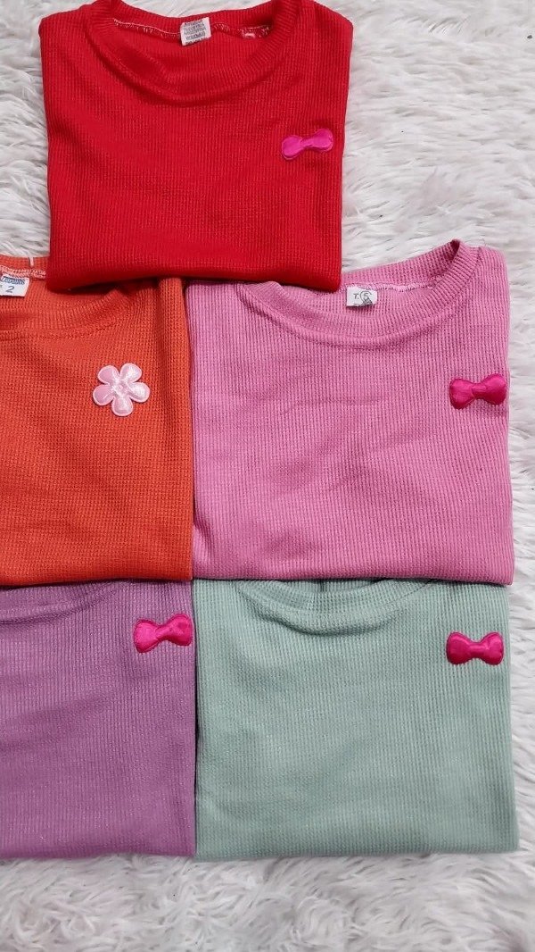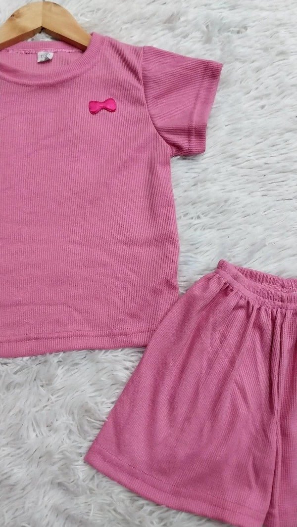 Conjunto de wafle brilloso, con aplique, short y remerita, variedad de colores. Talles 1, 2, 3 y 5. ♥︎ IMPORTANTE♥︎ Agregar 4 unidades al carrito para respetar la curva y el precio mayorista. En caso de querer 2 curvas agregar 8 unidades