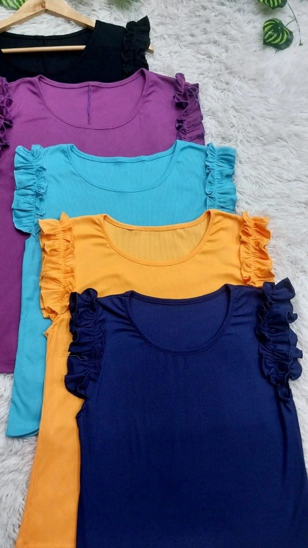 Musculosa de morley lisa, con voladitos variedad de colores. Talles 1 al 6 ♥︎ IMPORTANTE♥︎ Agregar 6 unidades al carrito para respetar la curva y el precio mayorista. En caso de querer 2 curvas agregar 12 unidades