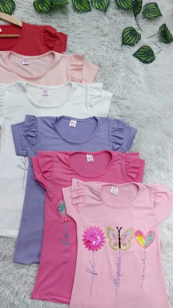 Remera de modal, bordada con voladitos en las mangas variedad de colores . Talles 4 al 16 ♥︎ IMPORTANTE♥︎ Agregar 7 unidades al carrito para respetar la curva y el precio mayorista. En caso de querer 2 curvas agregar 14 unidades